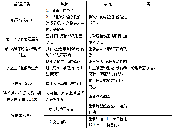 三、橢圓齒輪流量計(jì)常見故障和排除方法